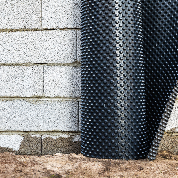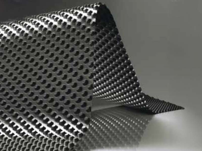 Its dimpled structure allows water to flow downward efficiently while protecting waterproofing layers from mechanical damage.